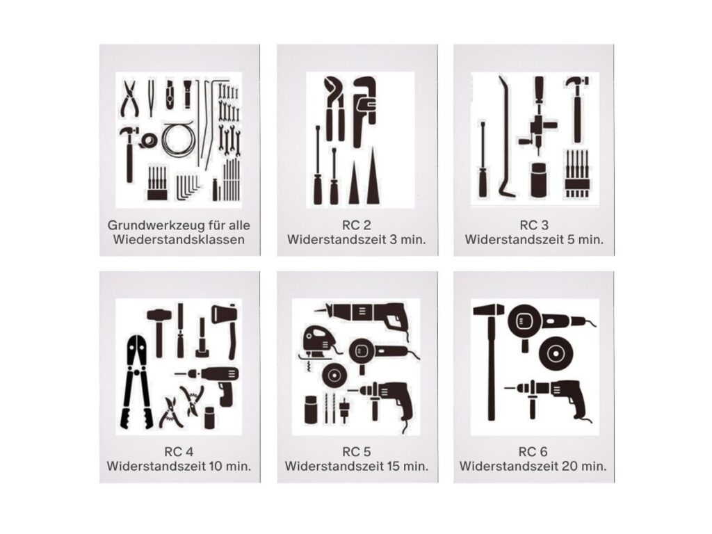 - Für Wohnobjekte ist die Widerstandsklasse RC 2 bis RC 3 normalerweise ausreichend, für normale Bürogebäude empfiehlt sich eine Widerstandsklasse RC 3.